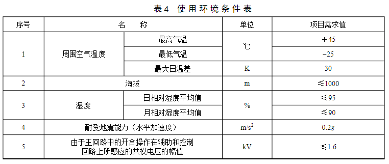 4?使用環(huán)境條件表?0.4kV低壓電纜分支箱使用環(huán)境條件見表4。特殊環(huán)境要求根據(jù)項(xiàng)目情況進(jìn)行編制。