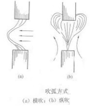 電弧產(chǎn)生后,可以采用氣吹滅弧的方式來熄滅電弧,也就是我們常說的吹弧。吹弧利用氣流作用于電弧,可以很好地冷卻電弧、提高電弧區(qū)的壓力、帶走殘余游離氣體,因此具有較好的滅弧性能。吹弧的方式可以橫吹,也可以縱吹。
