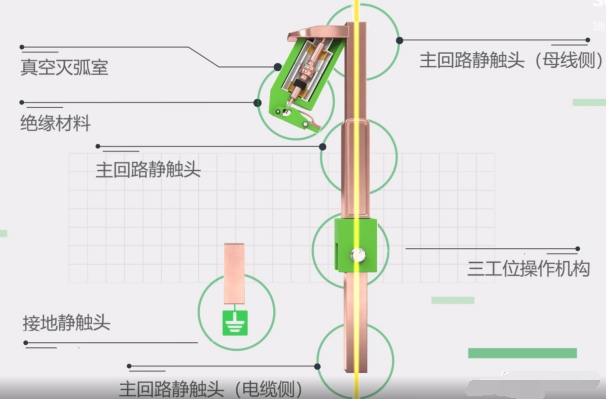 并聯(lián)真空開斷方案由真空滅弧室和空氣中的隔離開關(guān)組成,其實(shí)現(xiàn)了常見的三工位開關(guān)操作,而且零件數(shù)量小、成本低。