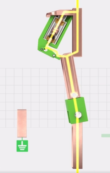 然后,電流通過處于閉合位置的真空滅弧室。接下來,在動觸頭的推動下,樞軸桿旋轉(zhuǎn)并驅(qū)使真空滅弧室開斷。
